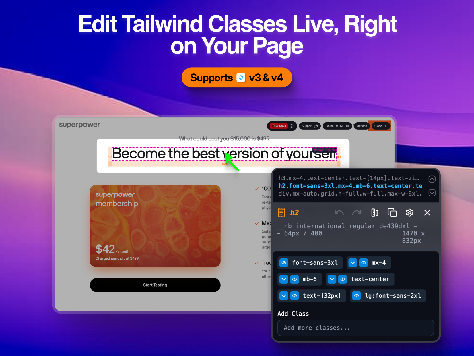 Tailwind editor in Browser. Inspect, edit, search any tailwind class, preview all changes in browser without switching to code editor